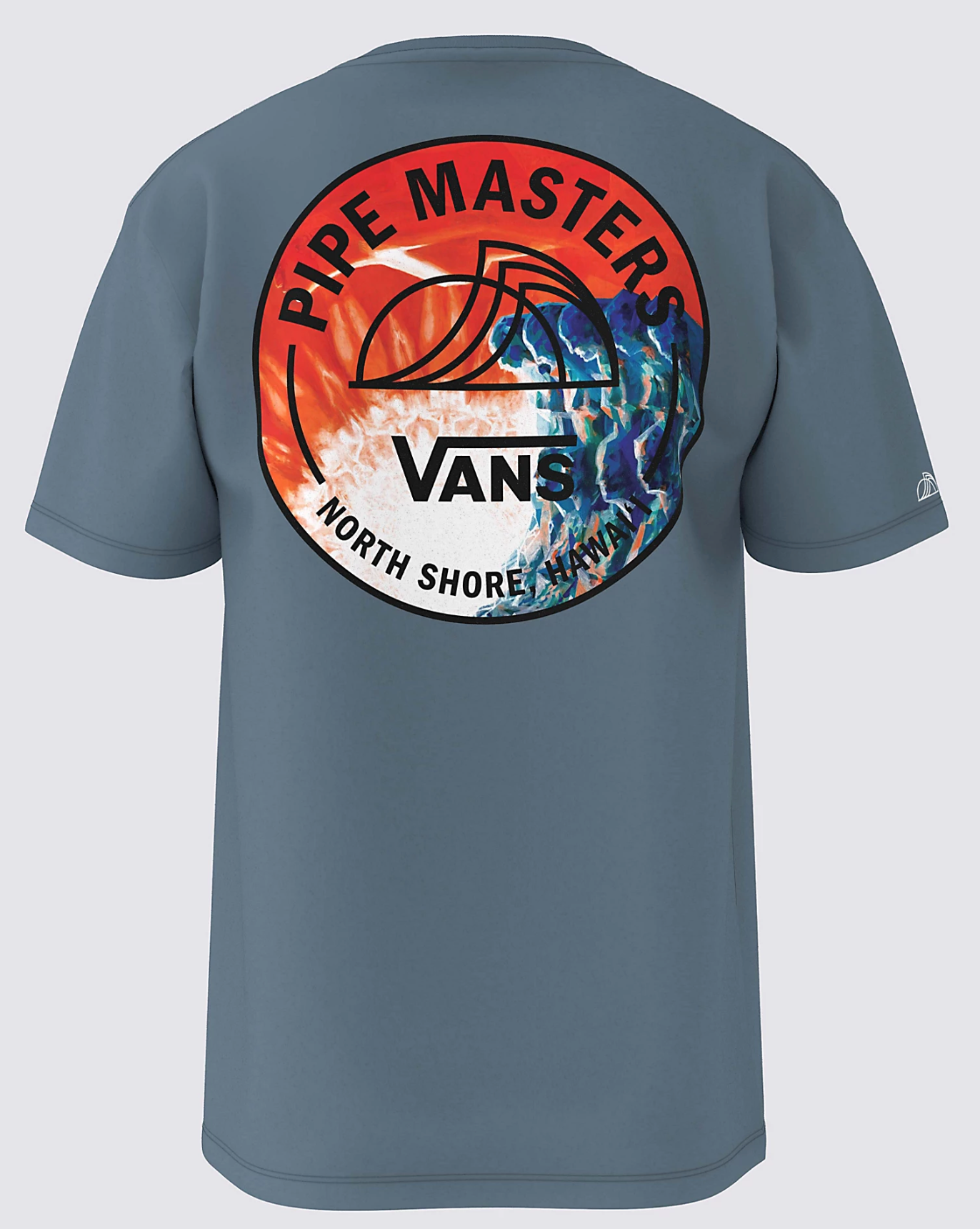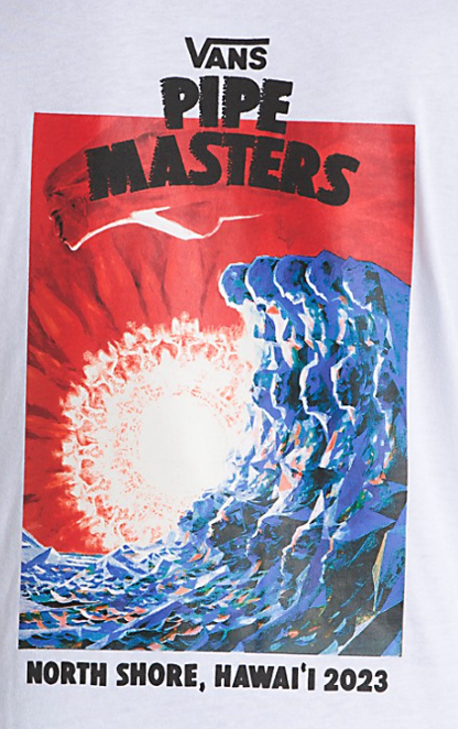 The 2023 Pipe Masters Poster T-Shirt is a short sleeve crewneck tee made from a heavier weight cotton and features a printed Vans graphic on the front and back