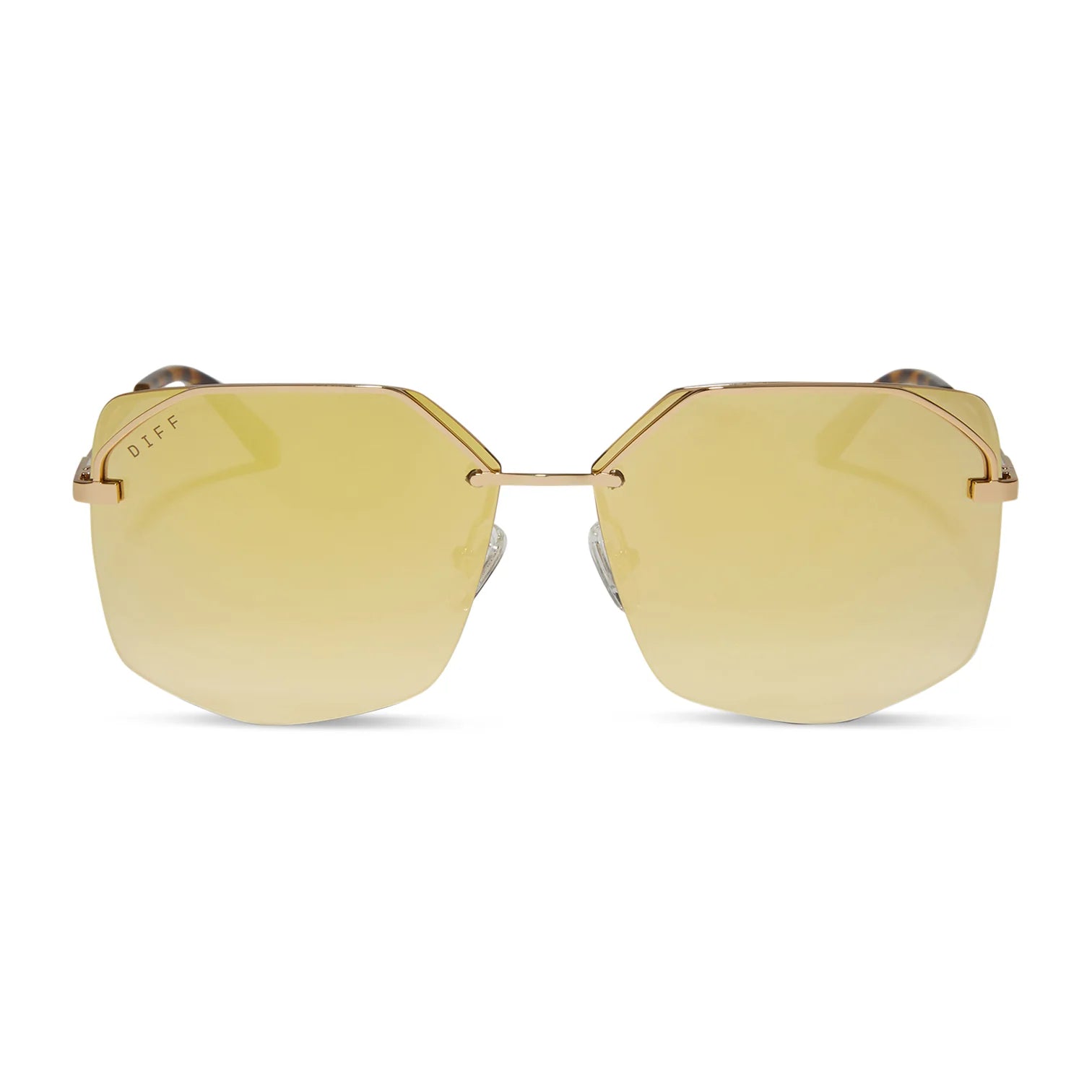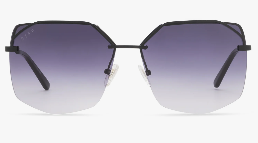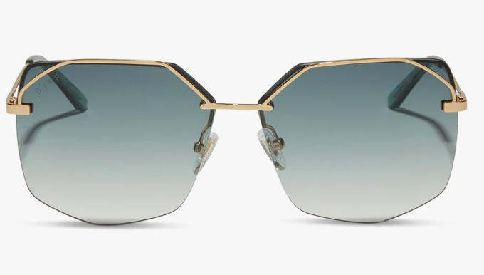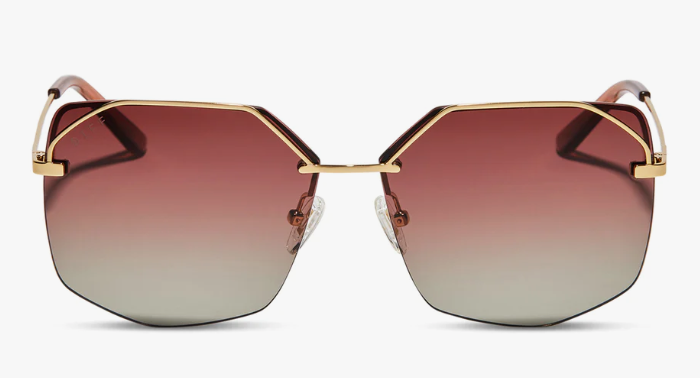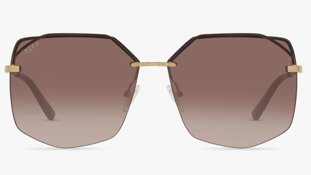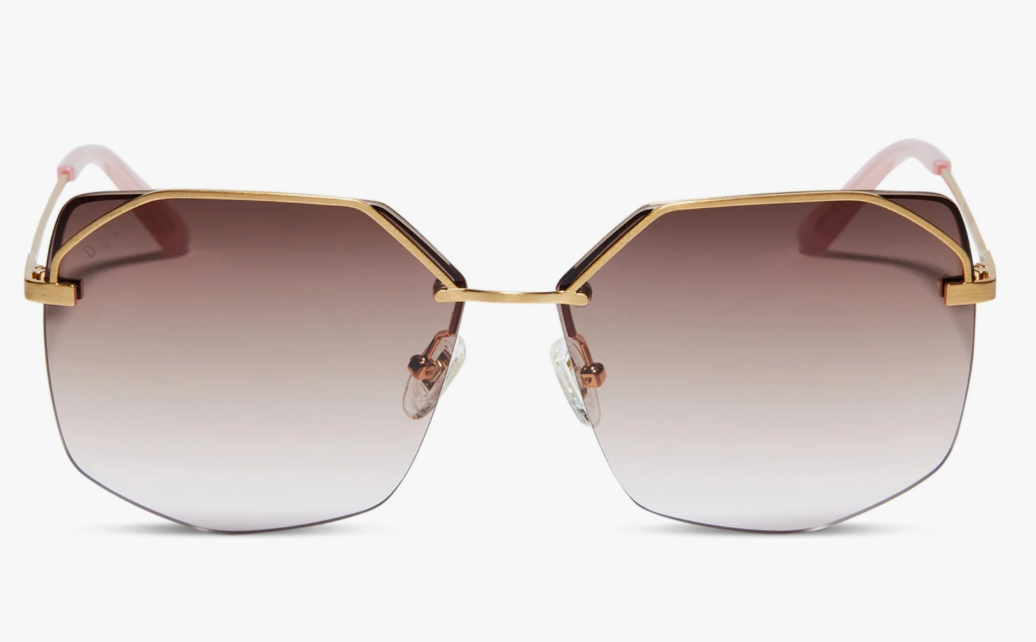Look forward to sunny days in Bree....these rimless sunglasses feature slim wire details, angular frames, and tortoise tips