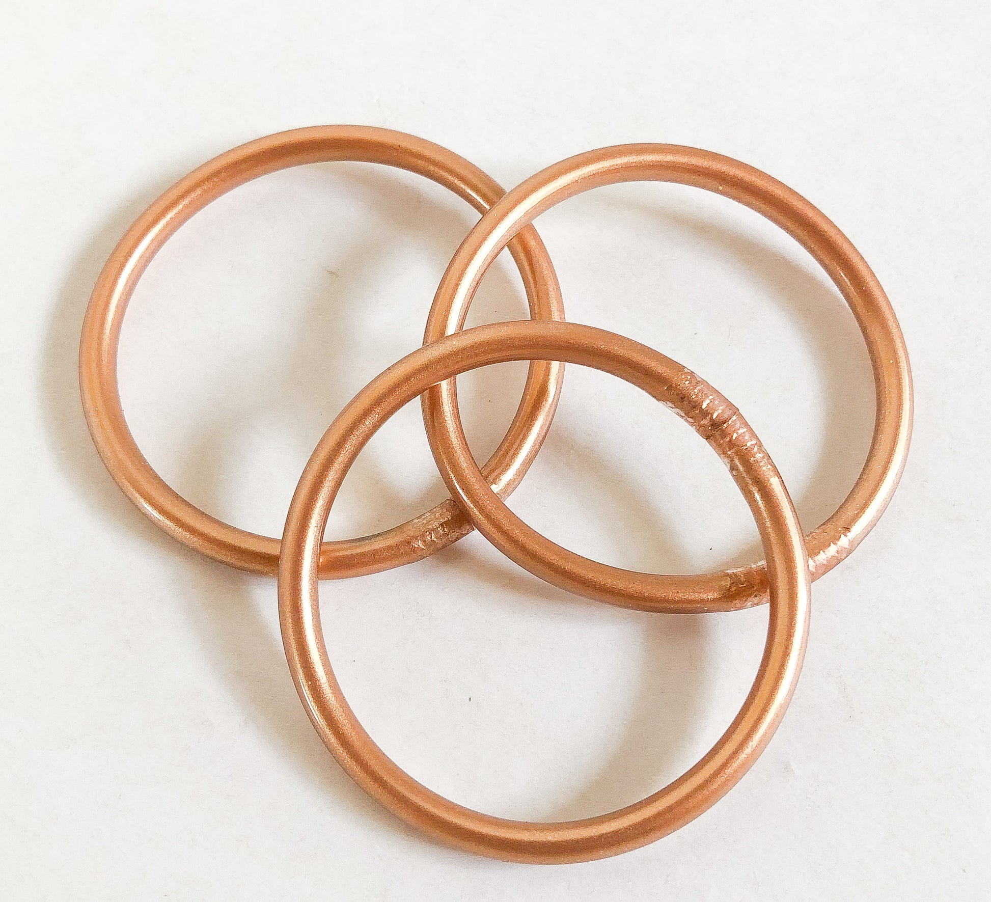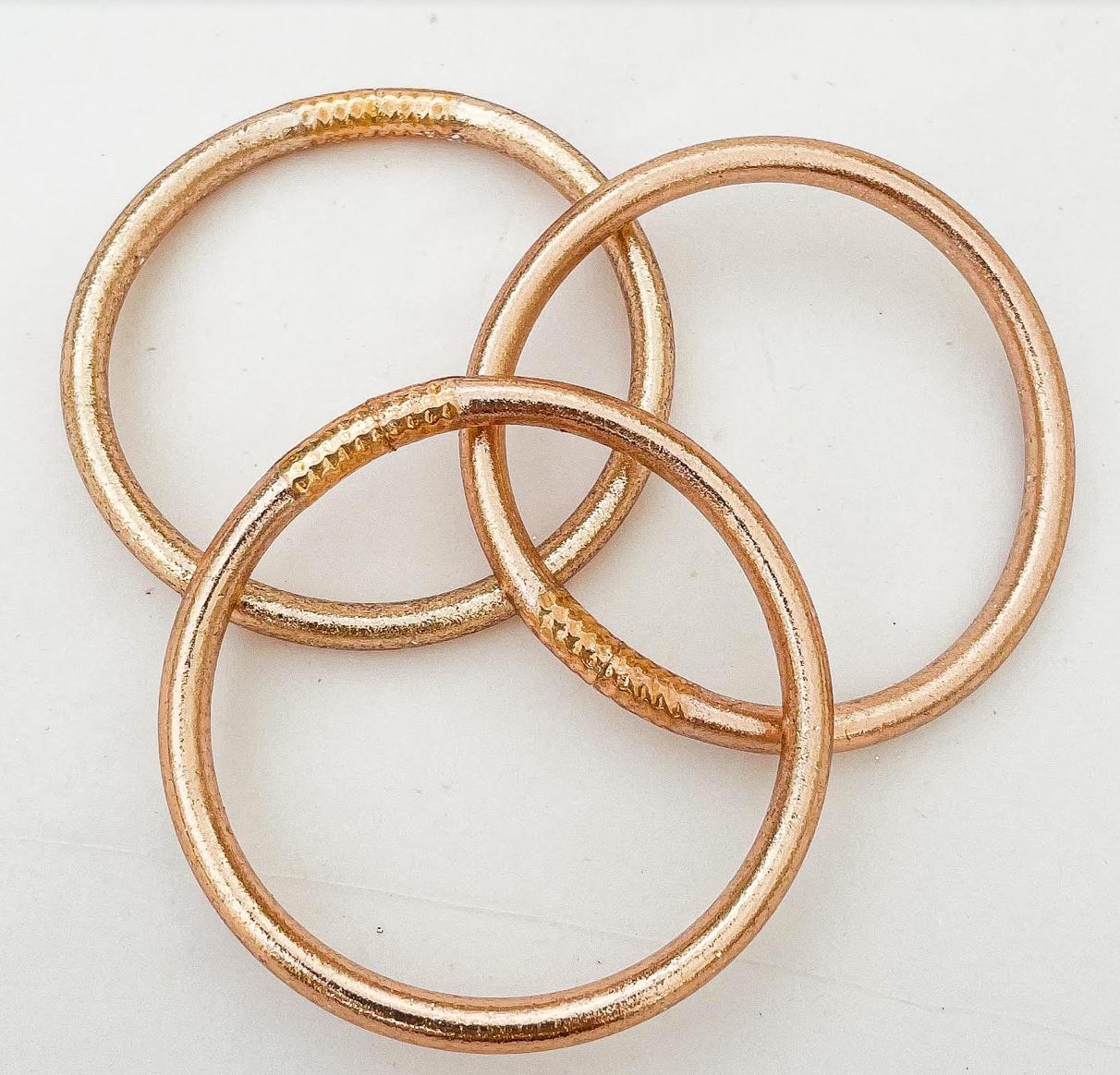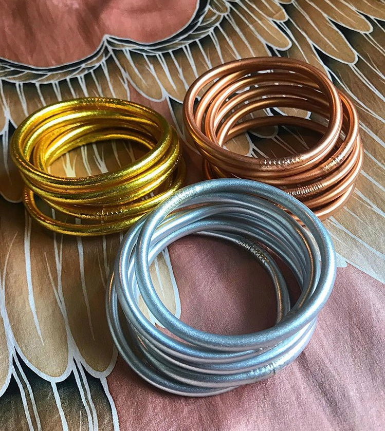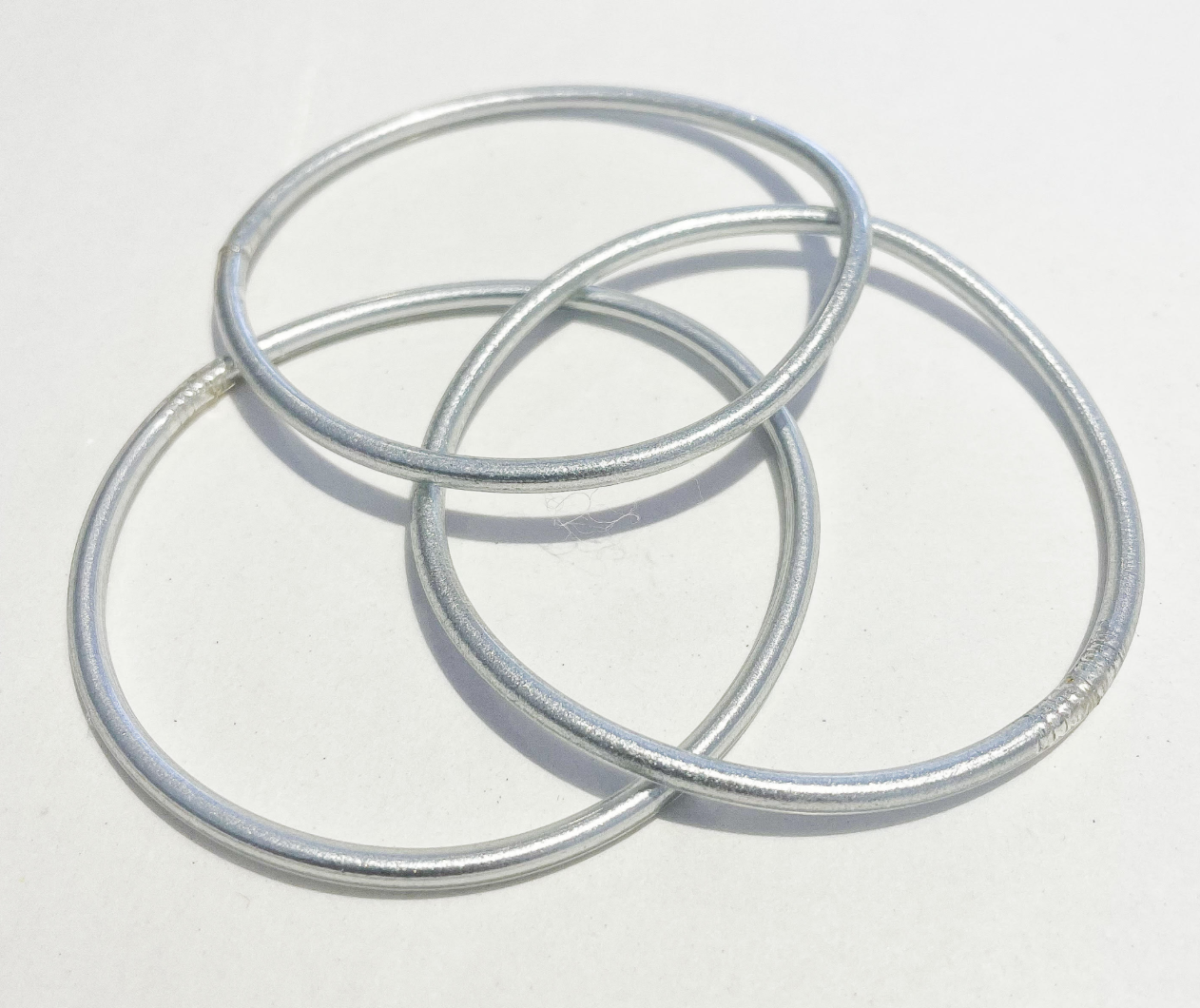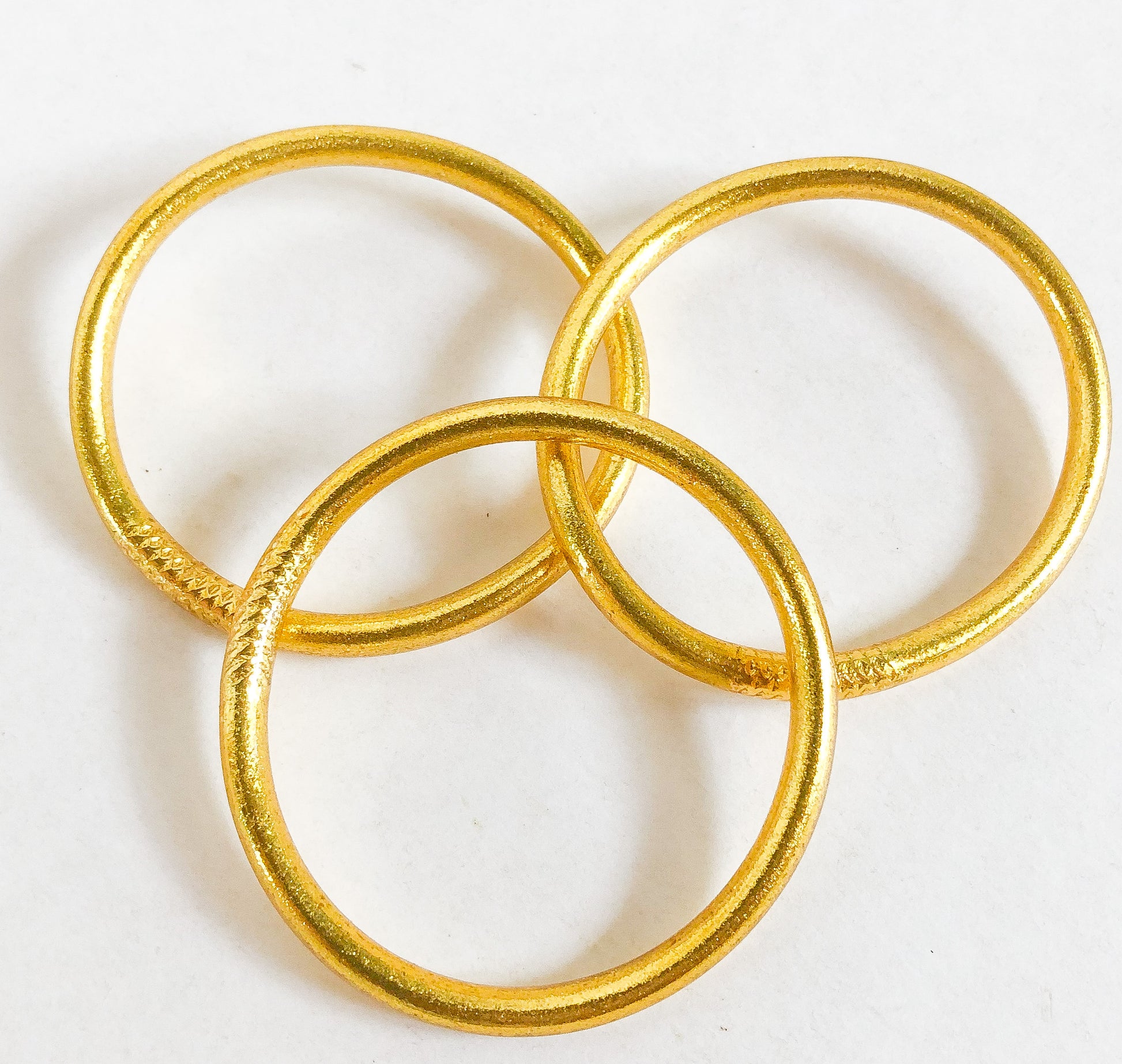 From the temples of Thailand these bracelets are made of clear plastic tubes w/ pure 24k gold leaf lining, sterling silver, and copper