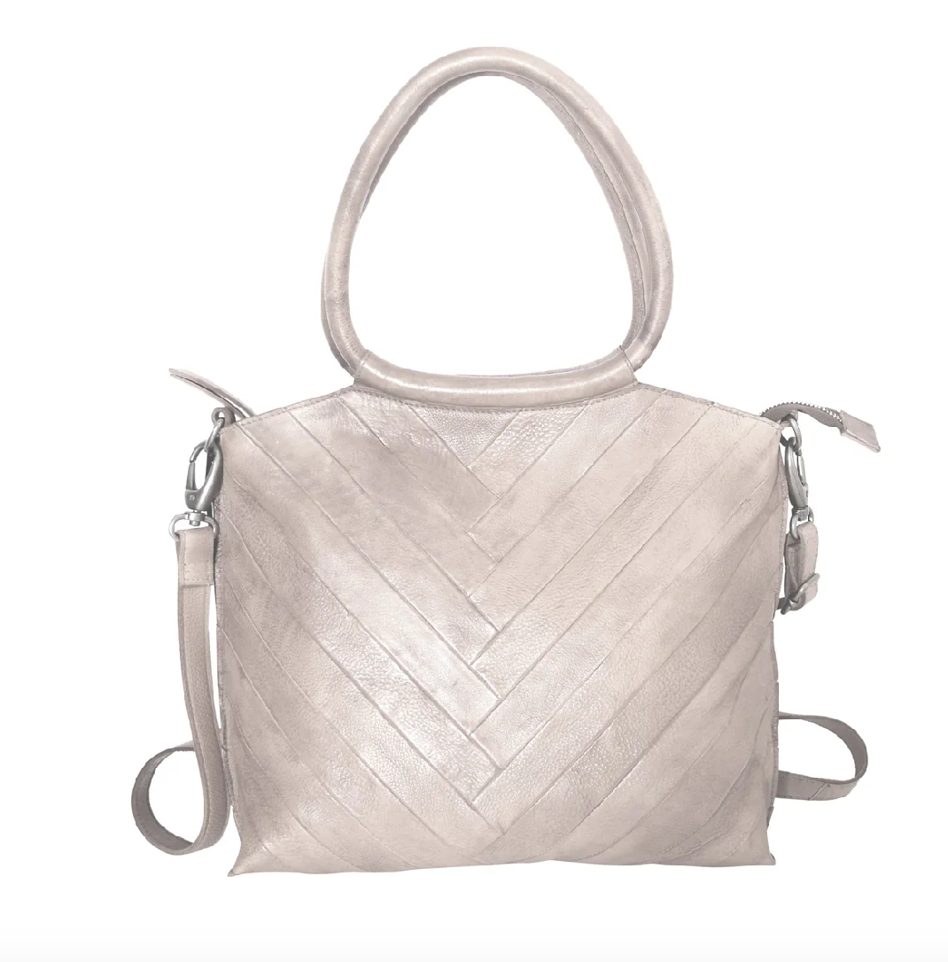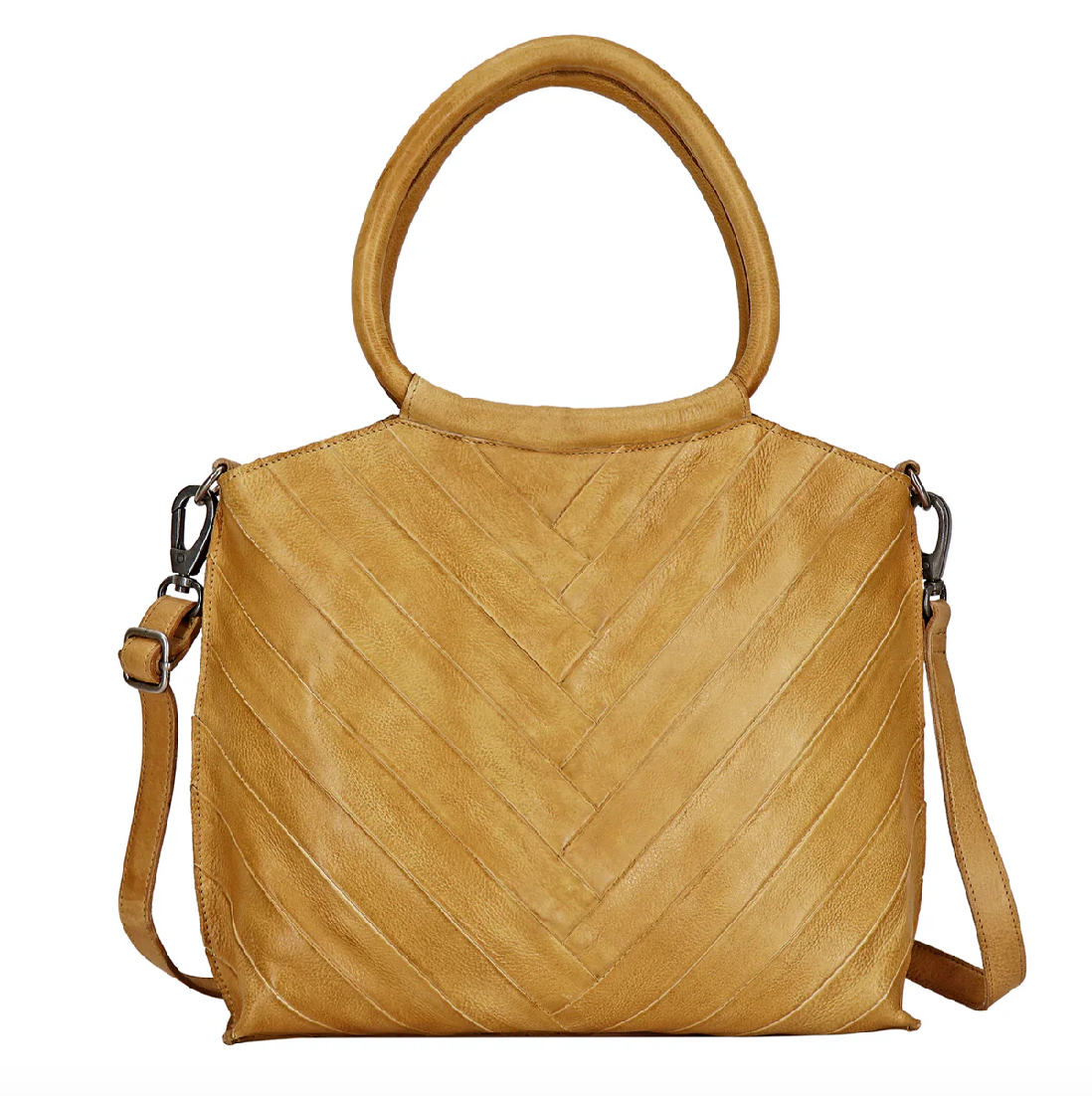 Rugged meets refined design in this handcrafted herringbone pattern tote