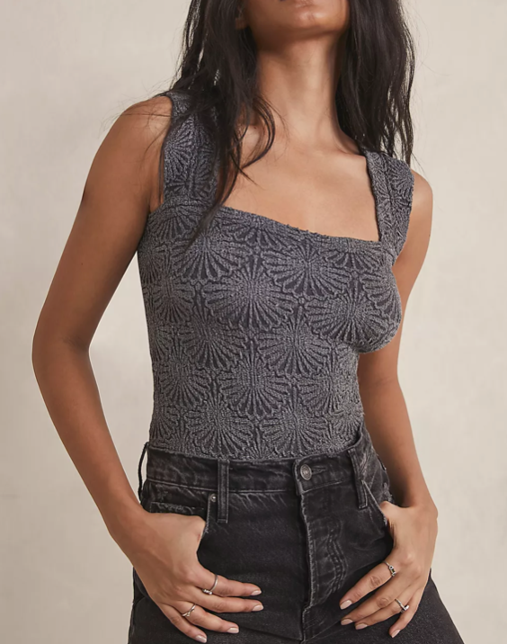 The Jacquard floral design compliments the statement lettuce-edge hemline