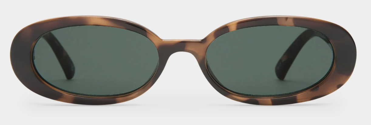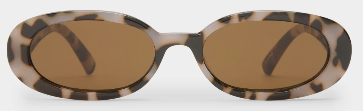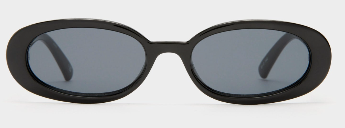 This petite, slimline oval silhouette features a modern flat profile and signature Le Specs gold metal hardware, and is just the right size to complement your face without hiding your best features