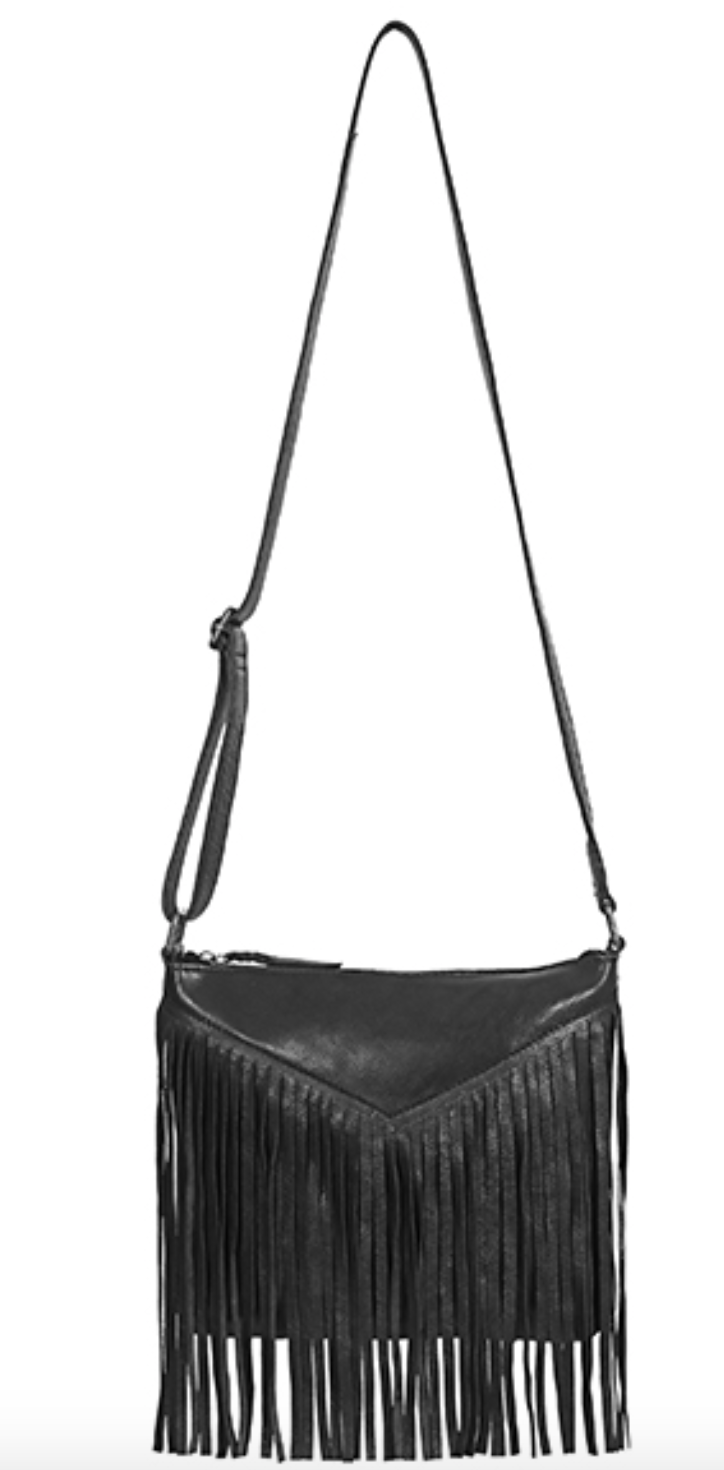 Envelope shaped with backside slip pocket with adjustable cross body strap. Inside back wall zippered compartment with two media pouches.