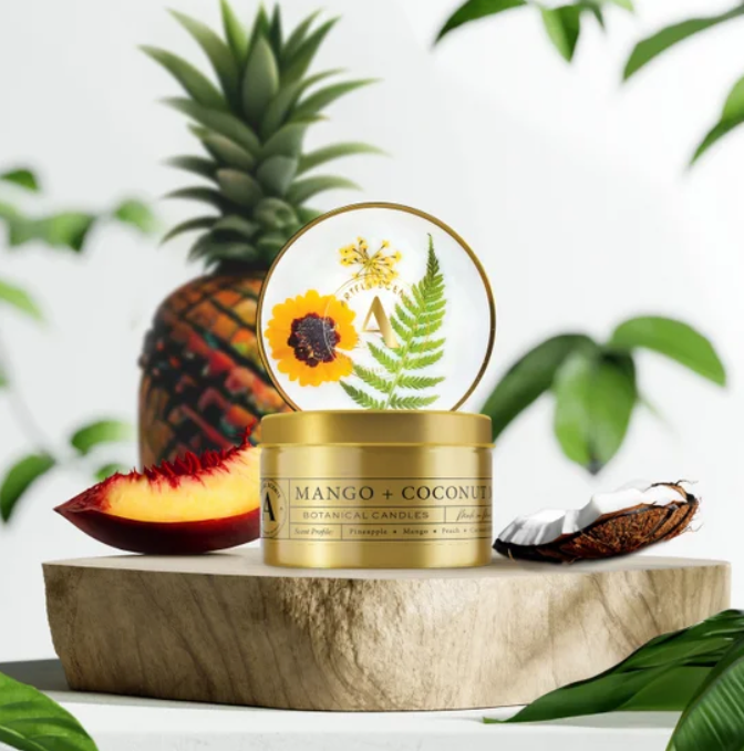 These beautiful gold finished, clear-top tins make the perfect gift. Each candle is designed with hand-placed flowers to create a unique and one-of-a-kind look