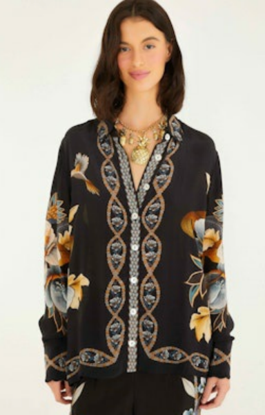 This elegant button up shirt features a sophisticated blend of Farm Rio’s iconic floral and snakeskin prints