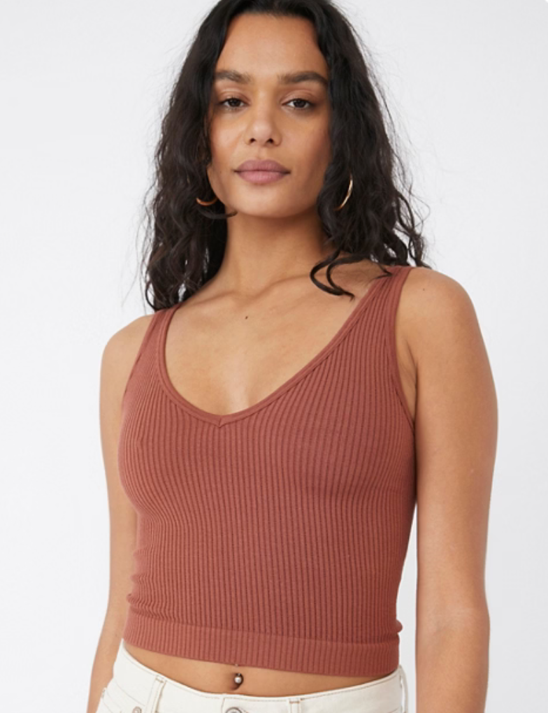 Thick ribbed texture allows you to wear it as a bra or just as a top paired with your fave high-waisted shorts!