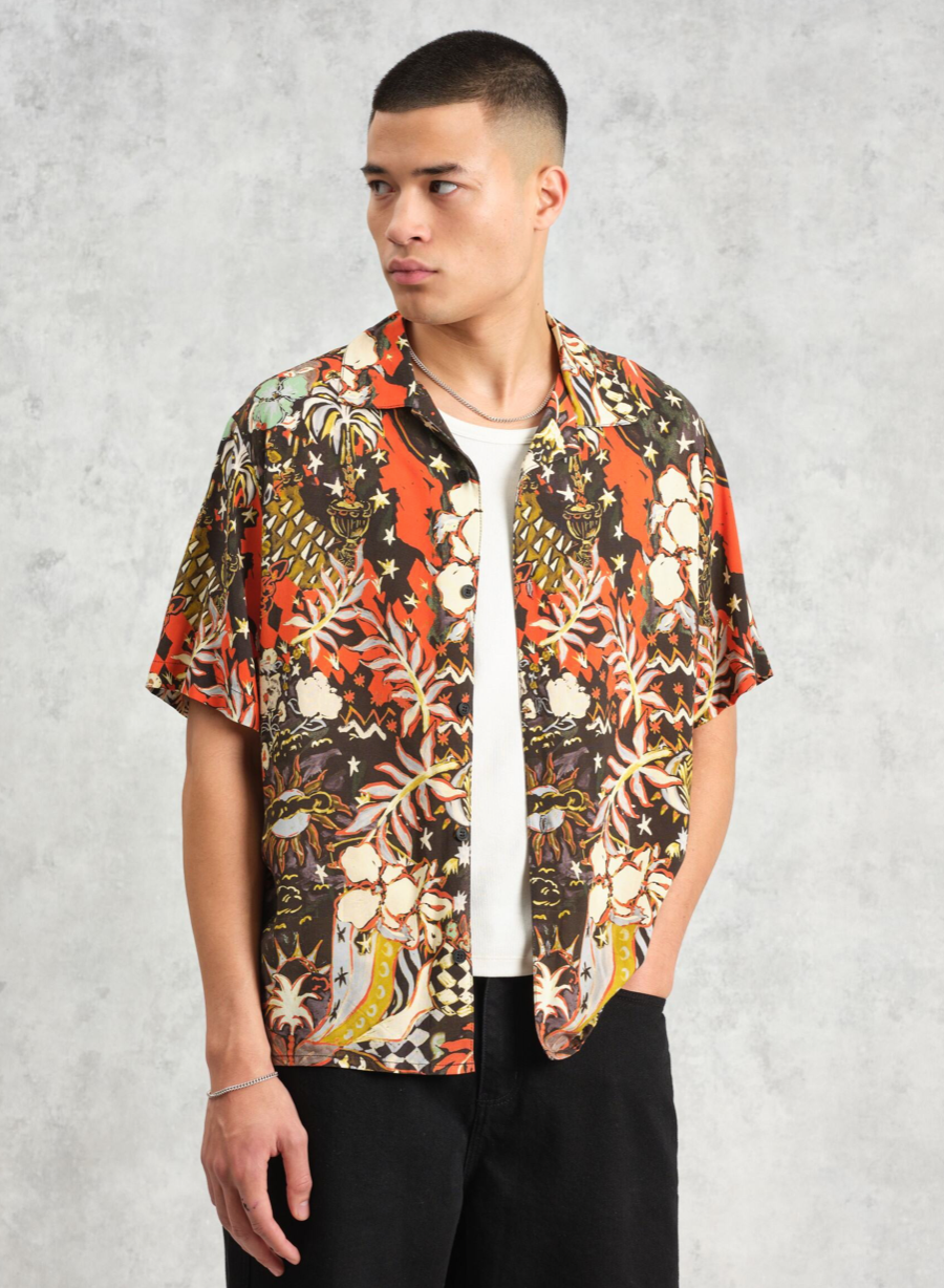 The Didcot Vacation Shirt retains its relaxed, breezy fit and is constructed from 100% FSC sustainable viscose fabric and features a new multicolor tropical print