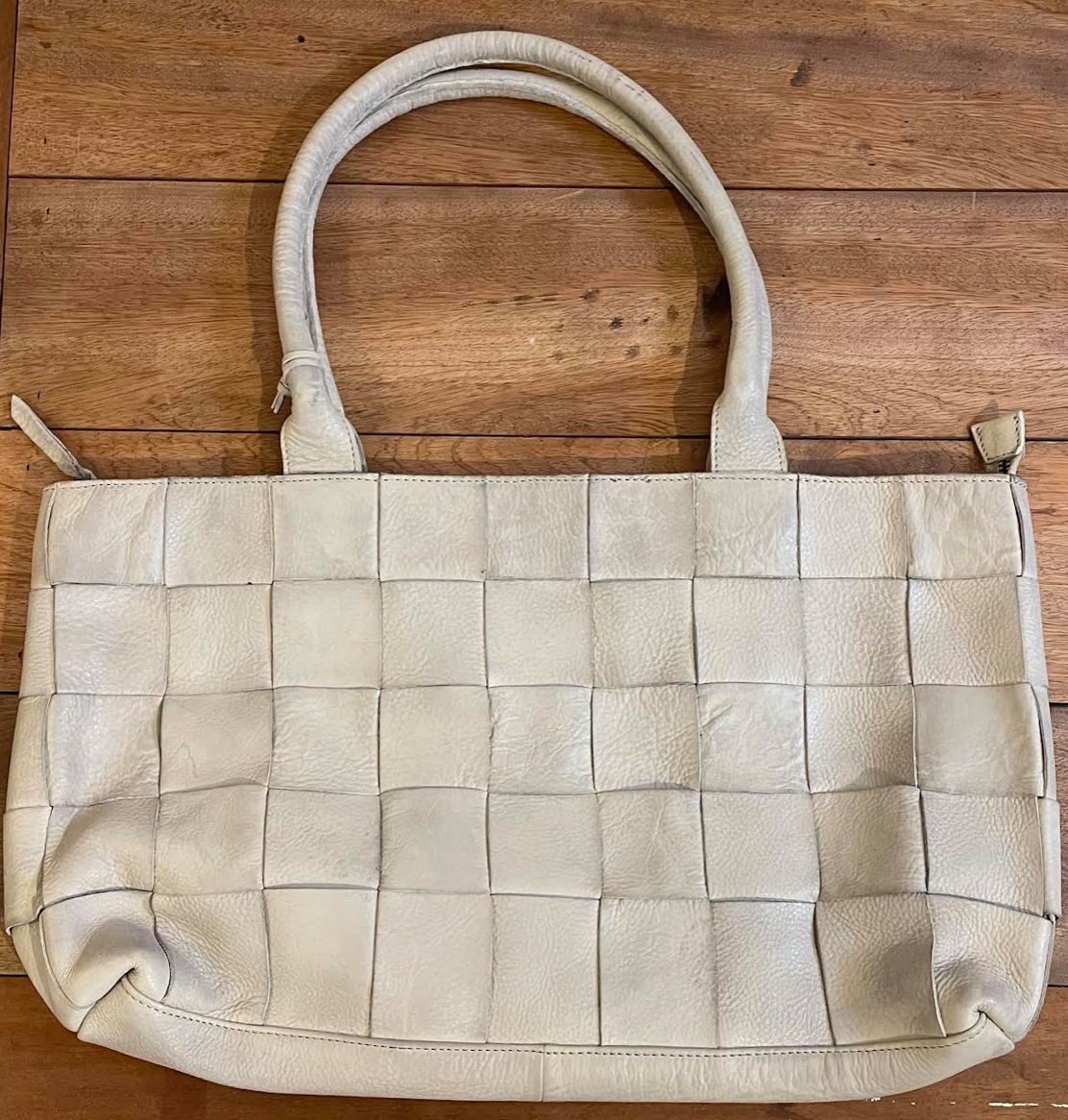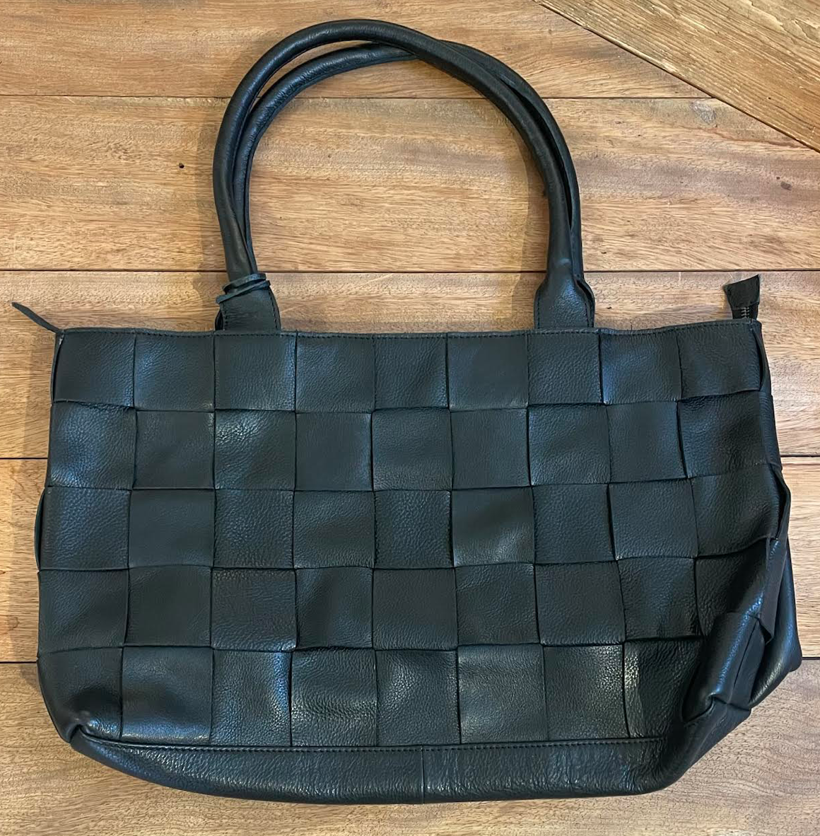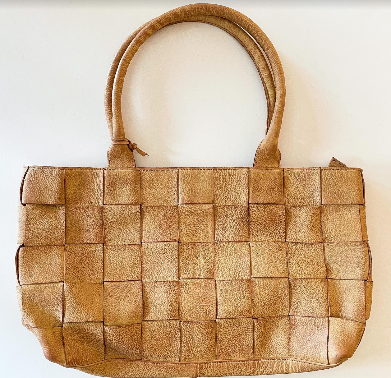 The Wade is a woven grand size tote with one zipper for the main compartment and a backside discreet zipper pocket