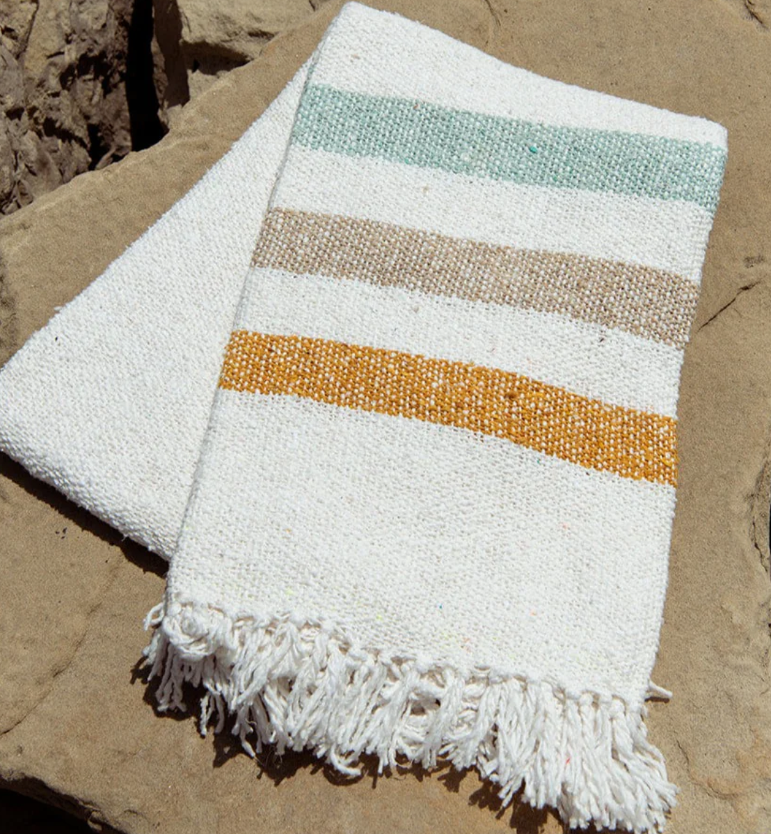 These throws are hand‑woven on a traditional loom from reclaimed fibers