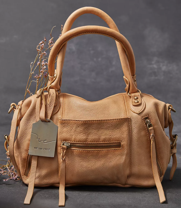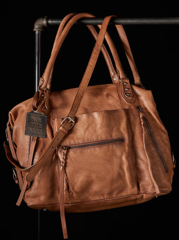 Featuring a spacious interior, worn leather fabrication, exterior and interior pockets, and buckle details